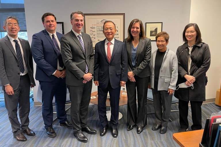 After arriving at HLS, Ambassador Lee and his team met with Lee Feinstein, Dean of the Hamilton Lugar School of Global and International Studies; Hannah Buxbaum, IU’s Vice President of International Affairs; Seung-kyung Kim, Director of the Institute for Korean Studies; and Callum Stewart, Lead Development Officer at HLS.