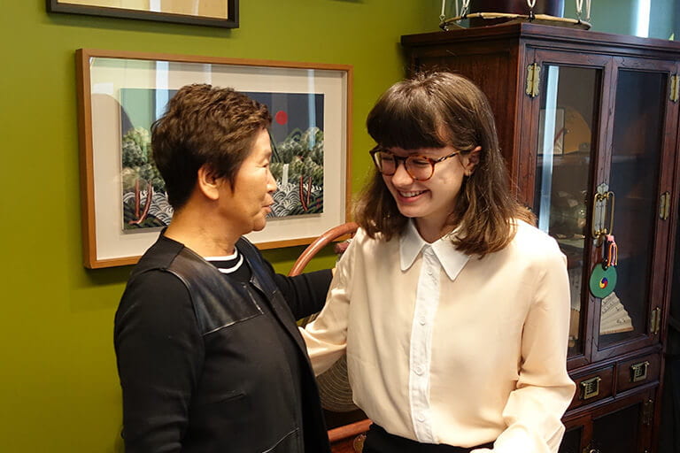 The award ceremony for the 2019 Korean Literature Essay Contest based on Han Kang's The Vegetarian was held on November 9, 2019, at 10:00 am in the Korea Conference Room. Dr. Susan Hwang, one of the judges, gave feedback to the participants via video conference.