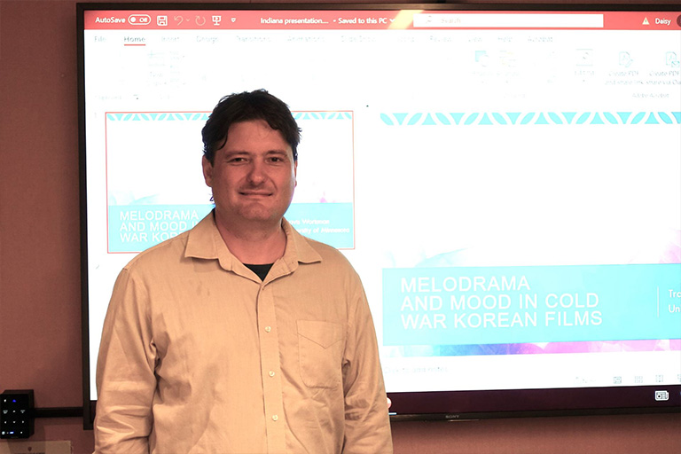 The Institute for Korean Studies welcomed Professor Travis Workman on Friday, September 22 as part of our Fall 2023 Colloquium Series. Professor Workman’s talk, “Melodrama and Moods in Cold War Korean Films,” discussed how raw effects can be provoked by melodrama and how emotions produced in film can be used in nation-building and state politics. The talk was followed by an engaging discussion with members of the Indiana University community.
